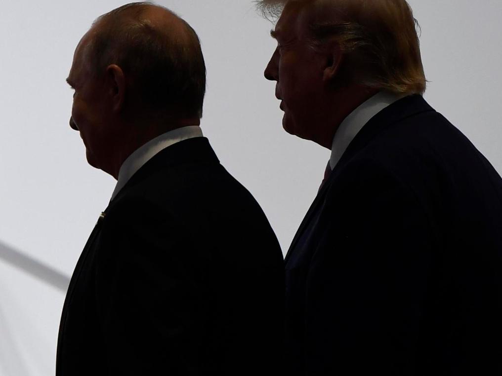 這是2019年6月28日在日本大阪拍攝的參加G20峰會(huì)的美國總統(tǒng)特朗普(右)和俄羅斯總統(tǒng)普京。新華社/美聯(lián)