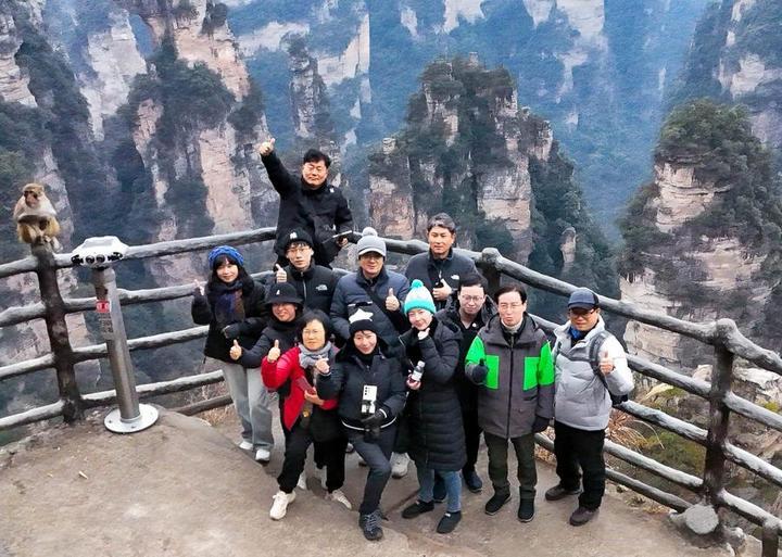 湖南張家界多年來是韓國家庭團熱門旅游目的地。65歲的韓國游客李淳龍和家人,首次免簽“中國行”就去了張家界探秘奇峰異石、深谷茂林。