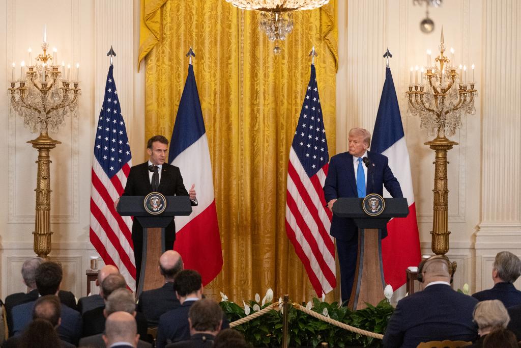 2025年2月24日,美國總統(tǒng)特朗普(右)在華盛頓白宮與到訪的法國總統(tǒng)馬克龍舉行會談后的聯(lián)合記者會。新華社記者胡友松攝