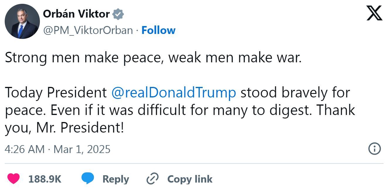 △歐爾班社交媒體截圖