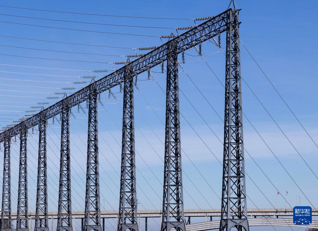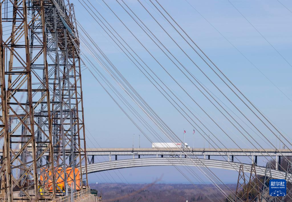 這是3月10日在加拿大安大略省尼亞加拉瀑布市拍攝的位于加美邊境地帶的亞當·貝克爵士水電站輸電線。新華社發(fā)(鄒崢攝)
