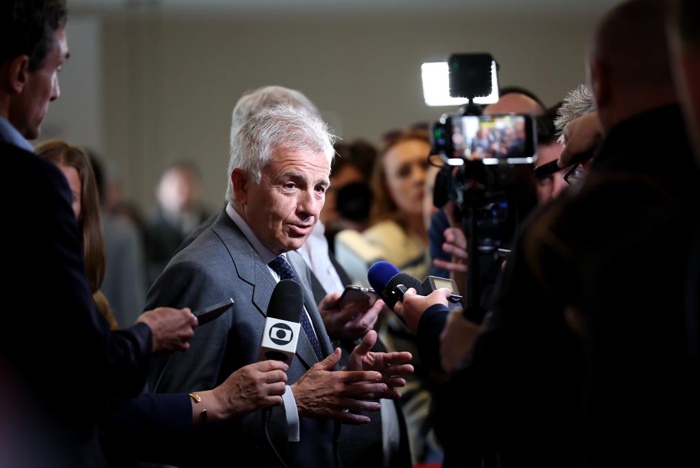 19日上午全會議程結(jié)束后,七位候選人先后來到會場外的混合采訪區(qū),面對來自全球近百名記者的“長槍短炮”。