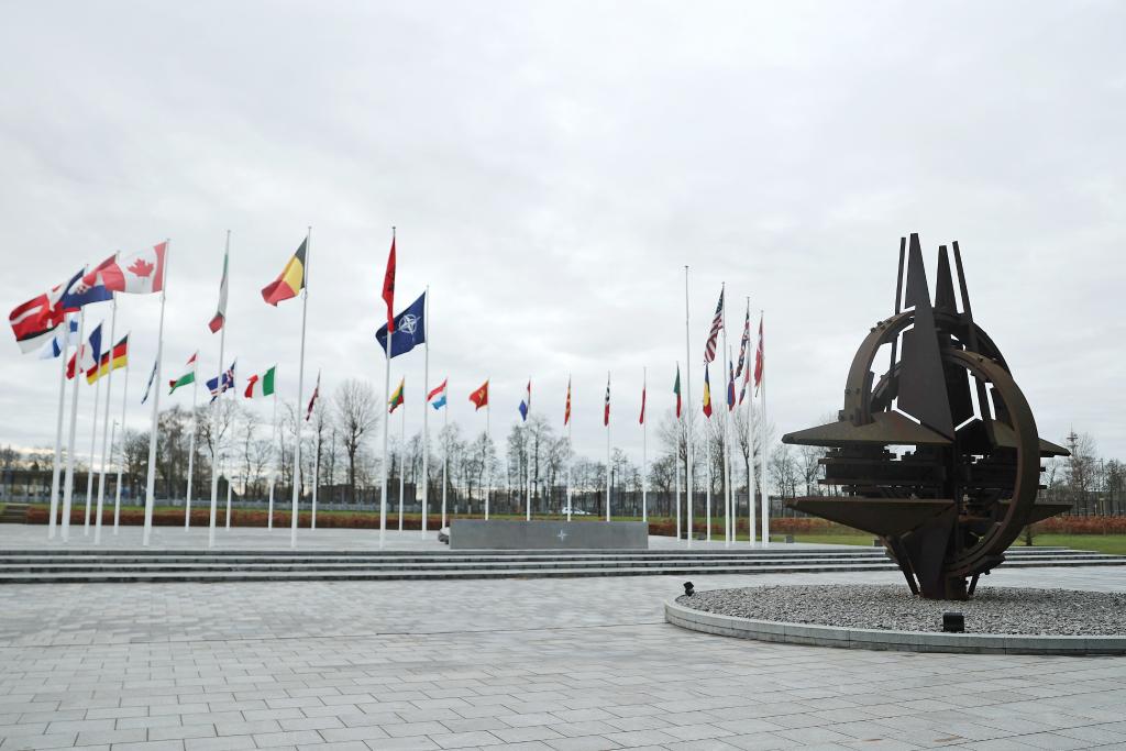 這是2024年2月15日在比利時布魯塞爾拍攝的北約總部一角。新華社記者 趙丁喆 攝