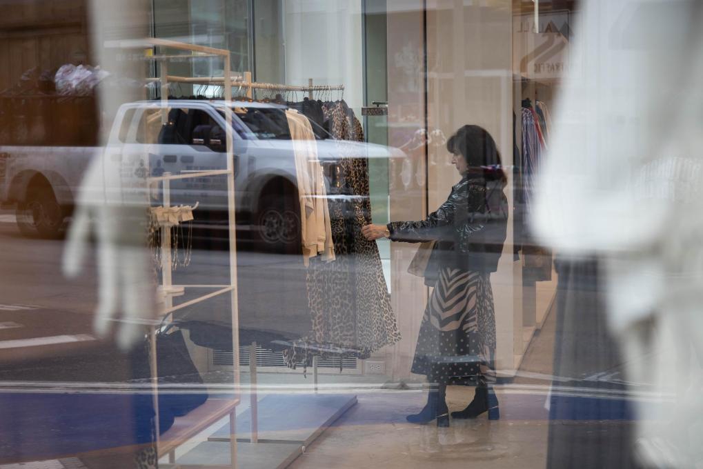 3月28日,顧客在美國(guó)紐約市一家服裝店選購(gòu)服裝。新華社發(fā)(郭克攝)