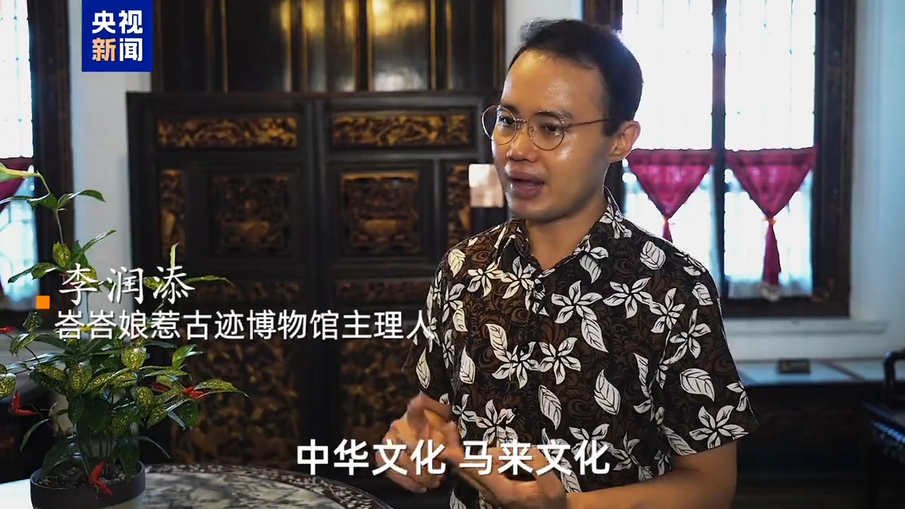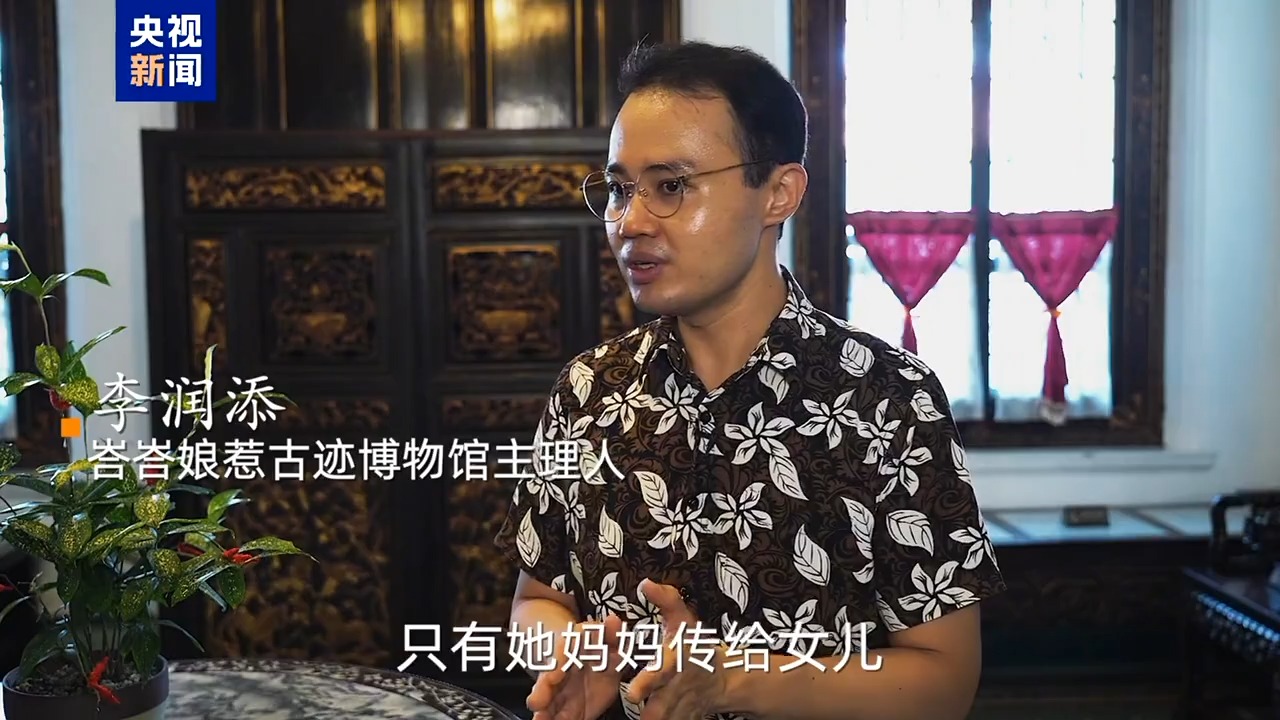 峇峇娘惹古跡博物館主理人 李潤添:所謂的娘惹文化其實是中華文化、馬來文化以及西方文化的融合。眼看好像是從西方來的椅子,但是你仔細(xì)觀察,它的手扶那邊有龍頭,里邊還含著一粒珠。