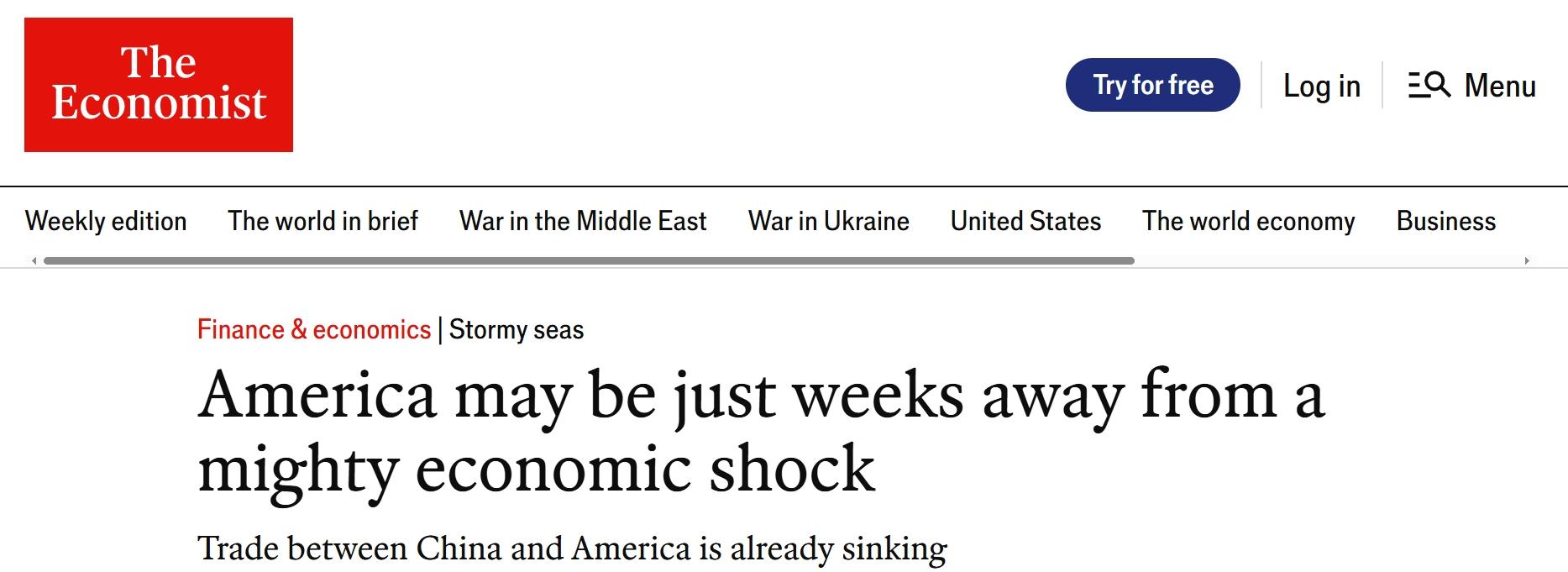 糟糕的經(jīng)濟表現(xiàn)拉響了美國經(jīng)濟衰退的警報。按《經(jīng)濟學(xué)人》的說法,美國距離巨大的經(jīng)濟沖擊還有幾周的時間。