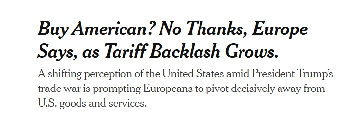 就在剛剛過去的4月,美國對其貿易伙伴征收10%的全面關稅,并威脅對包括歐盟在內的許多貿易伙伴征收“對等關稅”。特斯拉和麥當勞等美國知名企業(yè)明顯感受到了歐洲消費者對“美國制造”產品的抵觸情緒。歐洲央行在一篇關于消費者行為研究的博文中寫道:“美國新征收的對歐洲產品的貿易關稅,正讓歐洲消費者在購物時三思而后行”,“消費者非常愿意主動避開美國的產品和服務”。