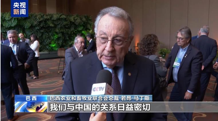 巴西農(nóng)業(yè)和畜牧業(yè)聯(lián)合會總裁 若昂·馬丁斯:我們與中國的關系日益密切,我們期望中國繼續(xù)成為巴西農(nóng)業(yè)非常重要的合作伙伴。