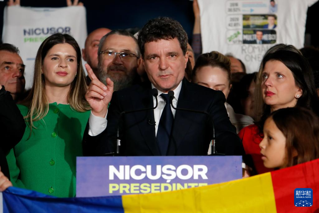 5月18日,在羅馬尼亞布加勒斯特,獨立候選人、布加勒斯特市長尼庫紹爾·達(dá)恩在總統(tǒng)選舉第一次投票后發(fā)表講話。新華社發(fā)(克里斯泰爾攝)