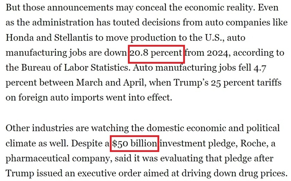 《政治報》的報道提到,在關(guān)稅政策深陷爭議的情況下,美國政府當(dāng)前非??释麑ν庹故尽懊绹?jīng)濟(jì)增長”的跡象,以至于一些公司只要口頭表示“考慮增加在美國的產(chǎn)能”就能得到白宮的贊賞。但現(xiàn)實卻是,許多白宮吹噓的企業(yè)投資計劃要么已經(jīng)籌備多年,要么被人為夸大,不少還可能在未來生變。
