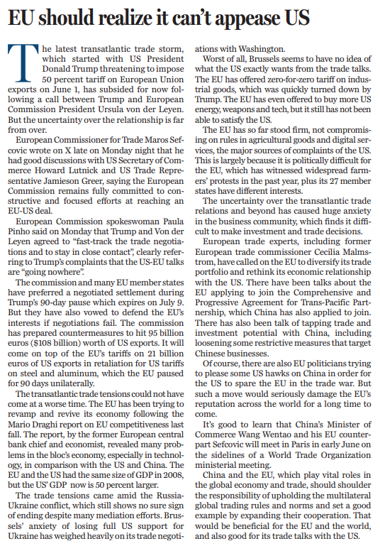 原標(biāo)題:EU should realize it can't appease US