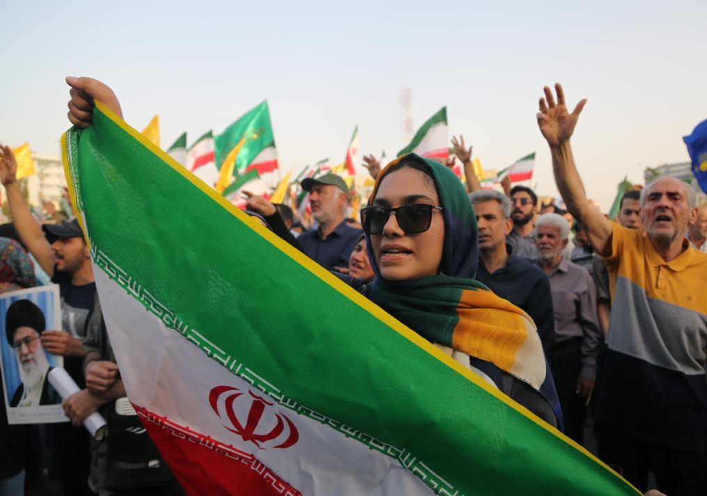 6月24日,民眾在伊朗首都德黑蘭革命廣場慶祝伊以?;?。新華社發(fā)