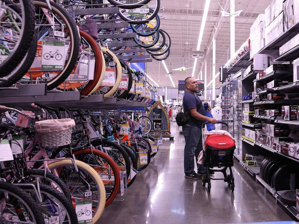 5月20日,顧客在美國加利福尼亞州洛杉磯縣一家沃爾瑪商店內(nèi)采購商品。新華社發(fā)(邱晨攝)