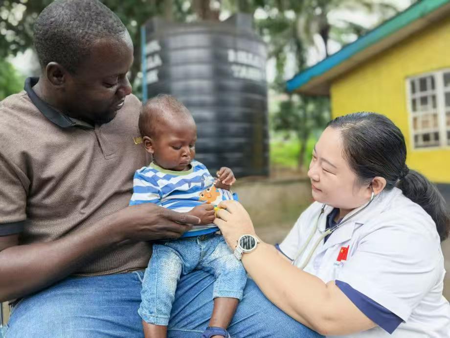 中國援助塞拉利昂醫(yī)療隊(duì)專家為當(dāng)?shù)貎和丛\