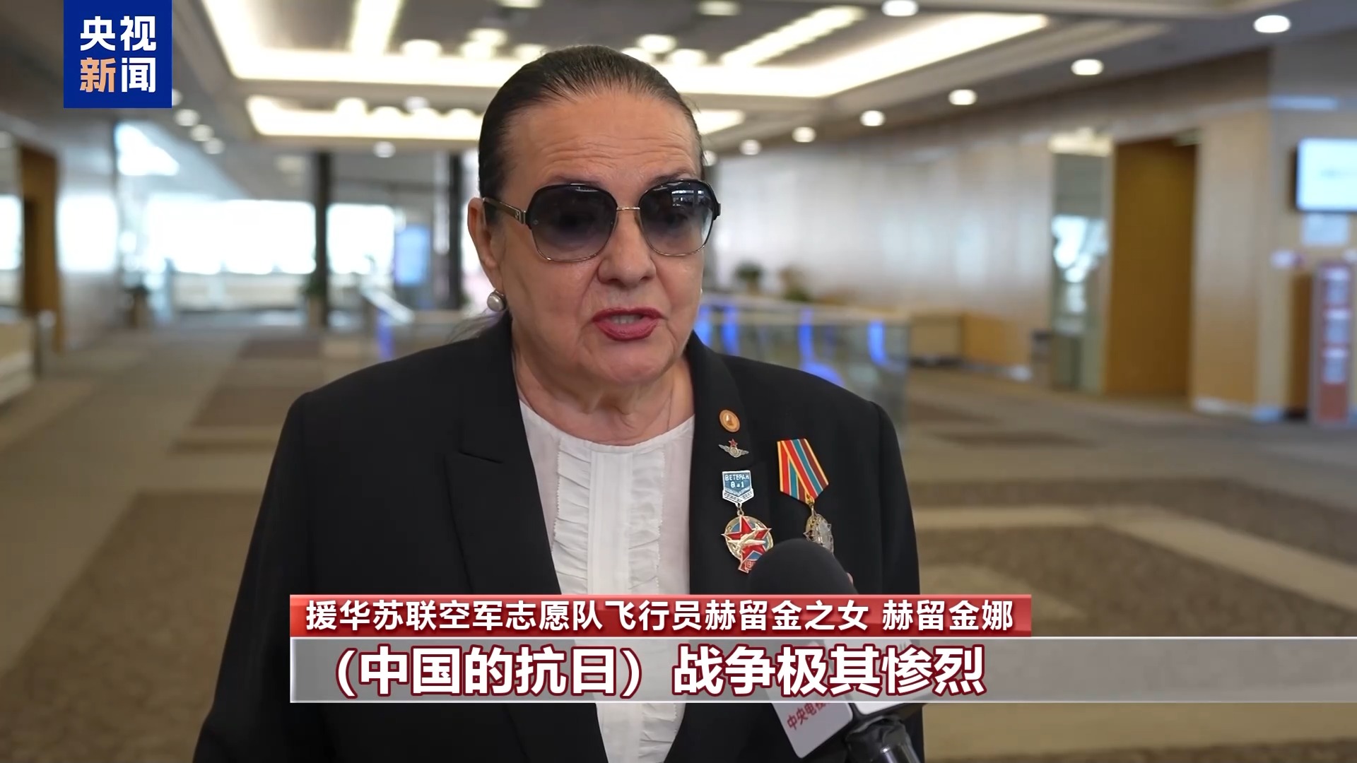 援華蘇聯(lián)空軍志愿隊飛行員赫留金之女 赫留金娜:中國的抗日戰(zhàn)爭極其慘烈,很多村莊、城市等都被摧毀殆盡,中國人民遭受了慘重?fù)p失,最終日本的侵略被擊退。二戰(zhàn)期間,中國為結(jié)束這場戰(zhàn)爭作出巨大貢獻(xiàn)。