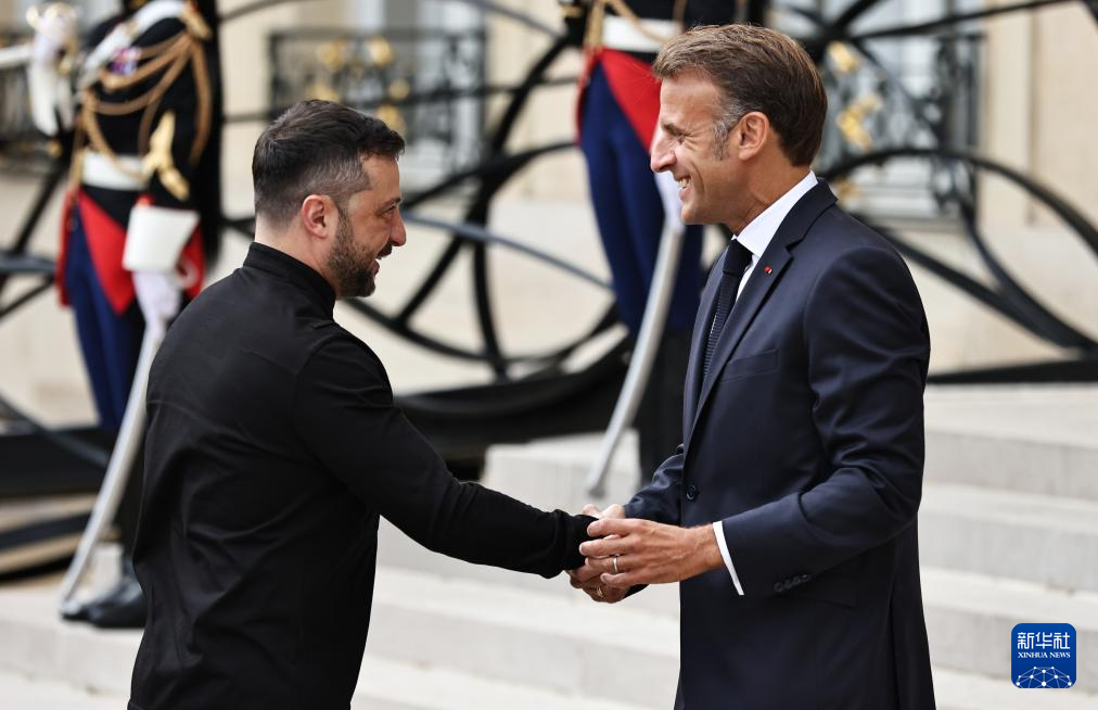 9月4日,在法國(guó)首都巴黎的總統(tǒng)府愛(ài)麗舍宮,法國(guó)總統(tǒng)馬克龍(右)迎接出席“志愿聯(lián)盟”線(xiàn)上會(huì)議的烏克蘭總統(tǒng)澤連斯基。新華社記者 高靜 攝