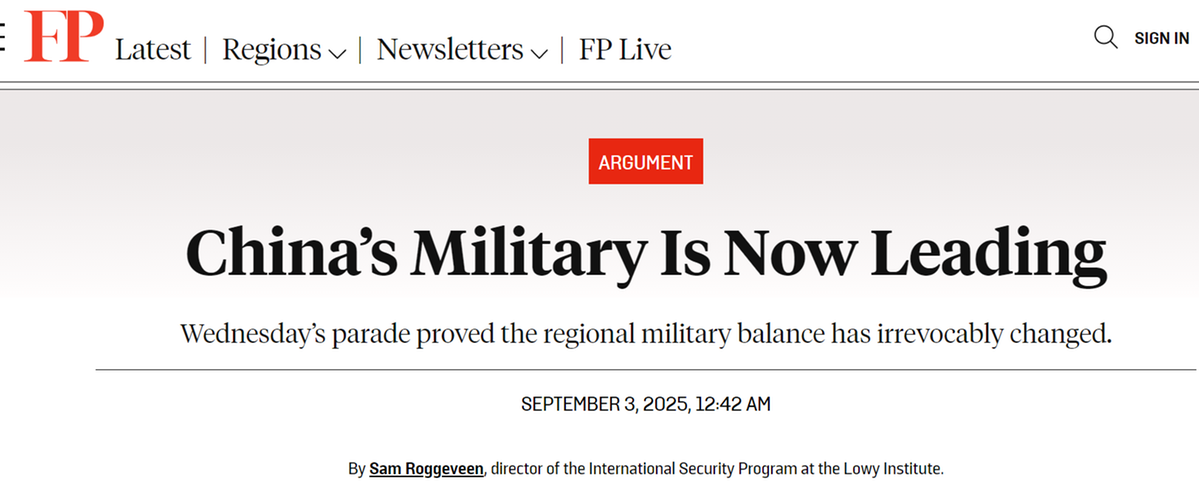 洛伊研究所國際安全項(xiàng)目主任薩姆·羅格維恩在美國《外交政策》網(wǎng)站撰文稱,西方的軍事規(guī)劃人員會(huì)對(duì)閱兵式上展出的裝備感到驚訝,已經(jīng)不能再說中國軍隊(duì)在迎頭趕上,或者所謂“抄襲”外國軍事裝備設(shè)計(jì),“中國軍備正在創(chuàng)新,并且處于領(lǐng)先地位”。
