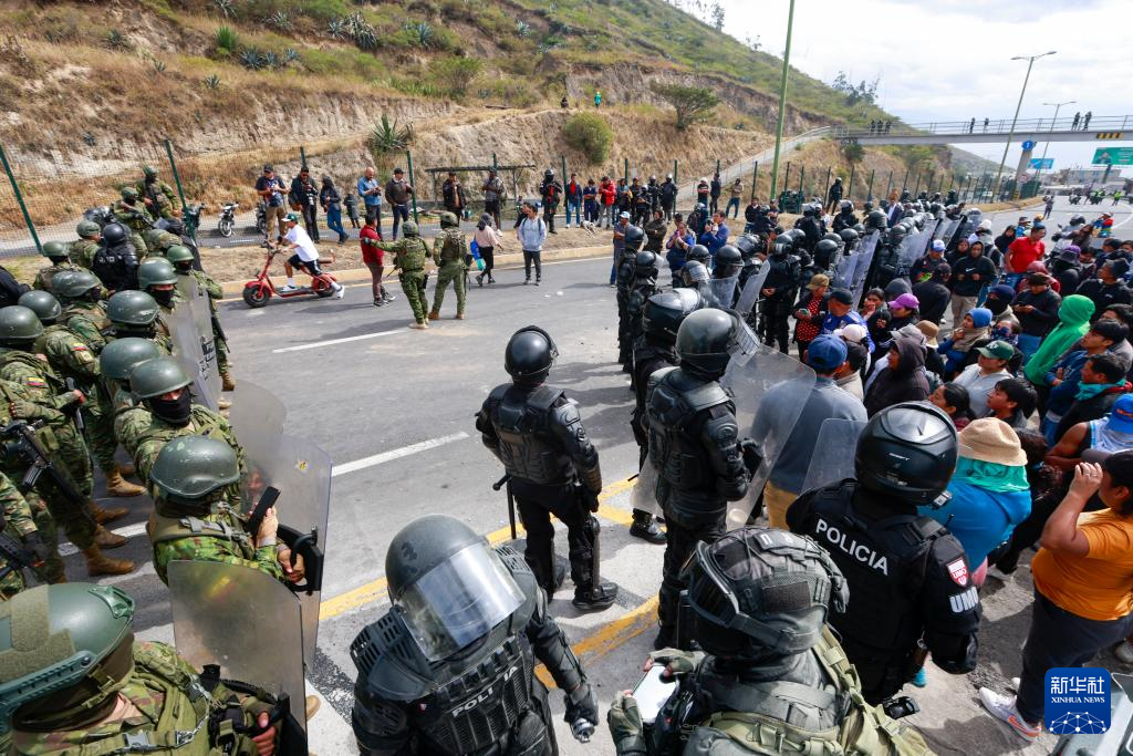 9月16日,在厄瓜多爾首都基多,武裝部隊人員維持秩序。新華社發(fā)(里卡多·蘭德塔攝)