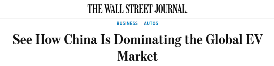 《華爾街日報(bào)》9月17日發(fā)表文章稱,在電動(dòng)汽車領(lǐng)域,“中國制造”的足跡在不斷擴(kuò)大,目前已占全球電動(dòng)汽車銷量的一半以上。