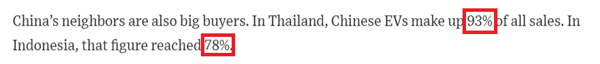 其次,中國的鄰國也是電動(dòng)汽車的大買家。在泰國,中國電動(dòng)汽車占總銷量的93%。在印度尼西亞,這一數(shù)字達(dá)到了78%。