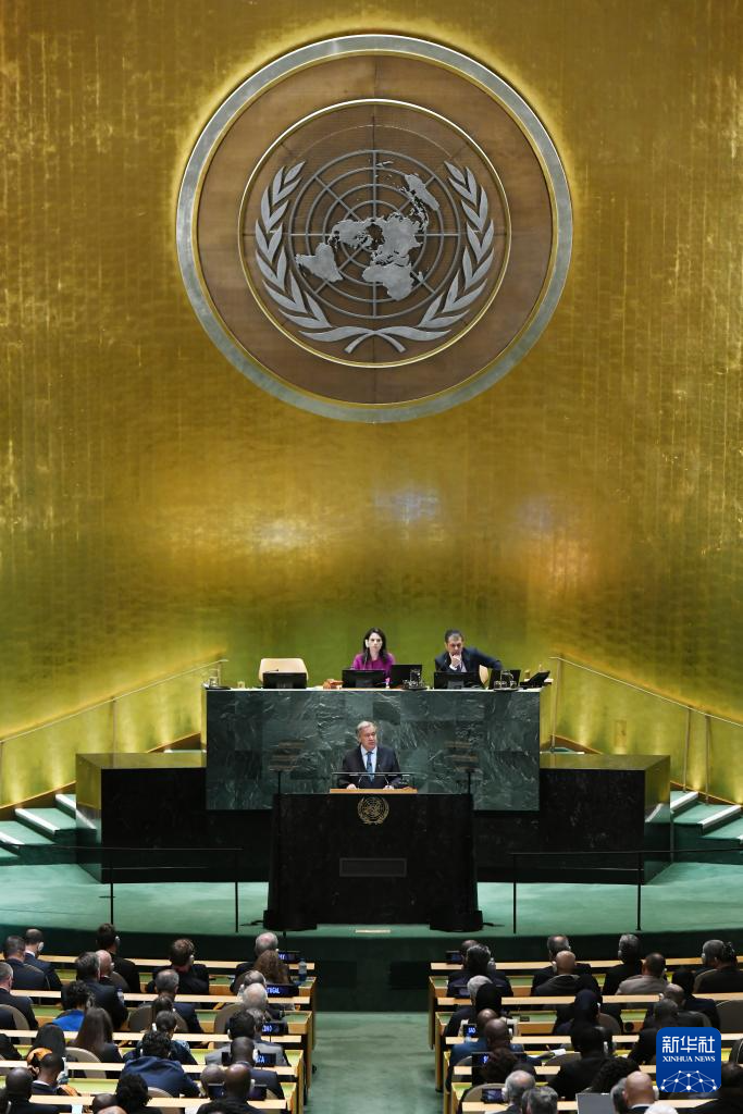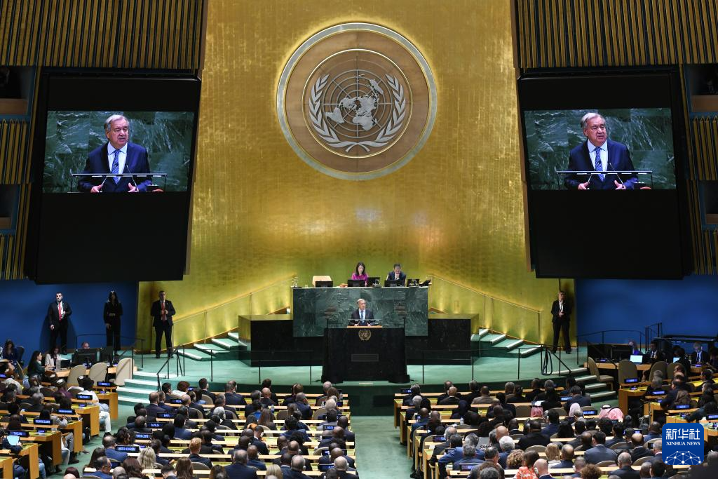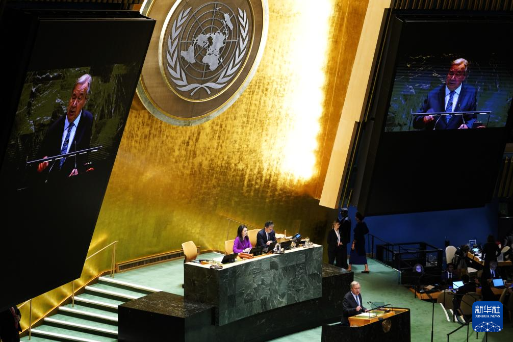 9月23日,在位于紐約的聯(lián)合國總部,聯(lián)合國秘書長古特雷斯在第80屆聯(lián)合國大會(huì)一般性辯論開幕式上致辭。新華社記者李睿攝