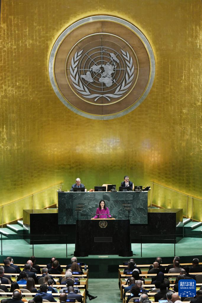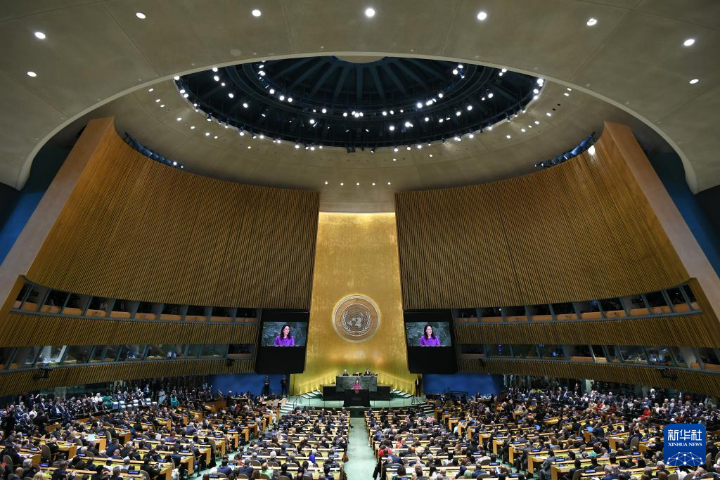 9月23日,在位于紐約的聯(lián)合國總部,第80屆聯(lián)大主席貝爾伯克(中)主持第80屆聯(lián)合國大會(huì)一般性辯論開幕式。新華社記者吳曉凌攝
