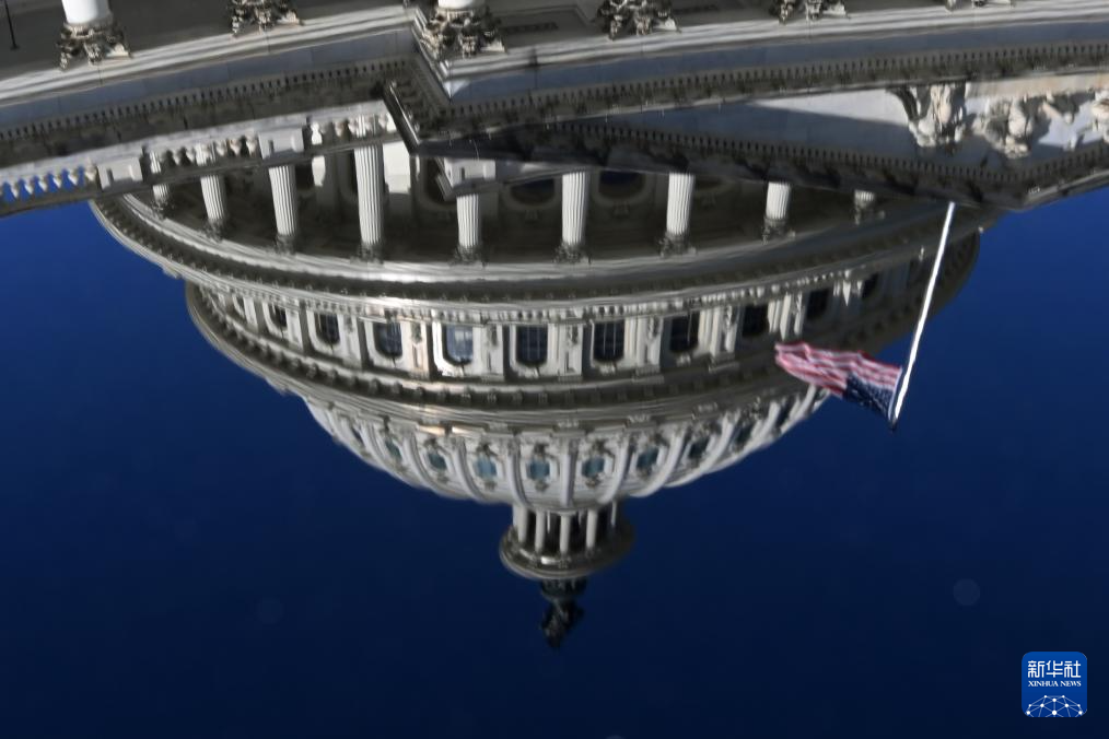 這是10月1日在美國首都華盛頓拍攝的美國國會大廈倒影。新華社記者 李睿 攝