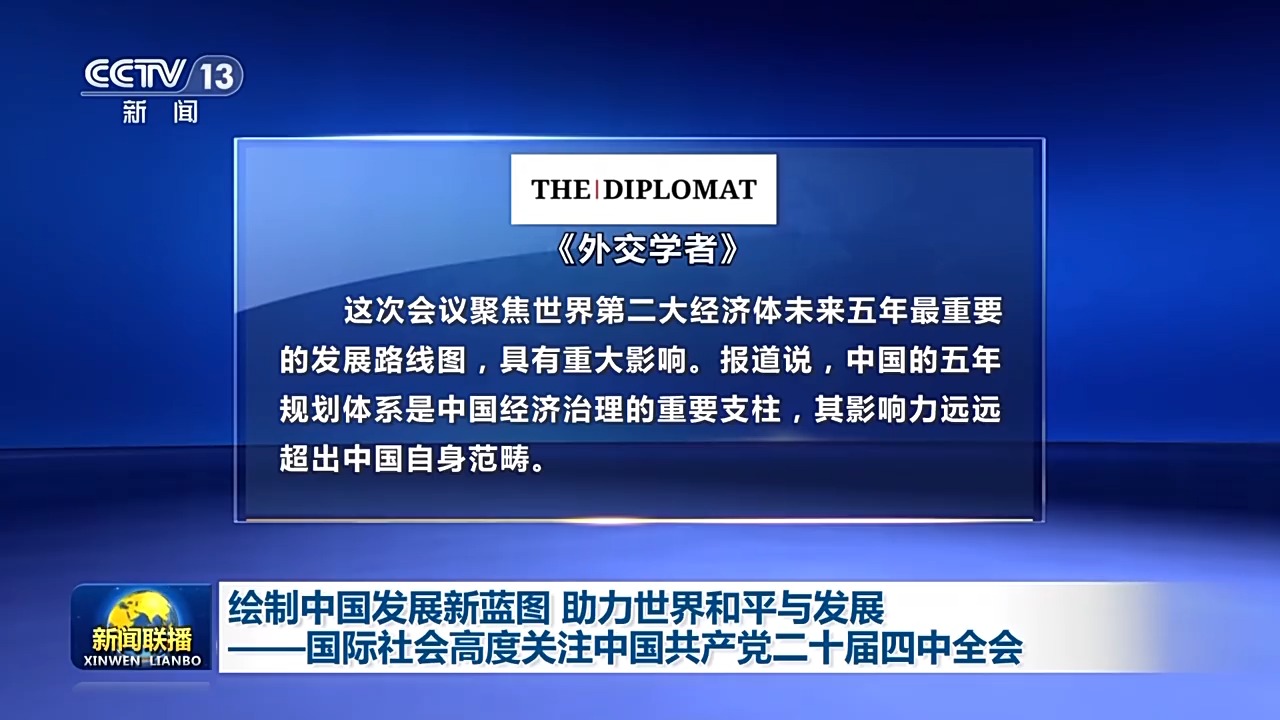 亞太地區(qū)國際時(shí)事雜志《外交學(xué)者》刊文稱,這次會(huì)議聚焦世界第二大經(jīng)濟(jì)體未來五年最重要的發(fā)展路線圖,具有重大影響。報(bào)道說,中國的五年規(guī)劃體系是中國經(jīng)濟(jì)治理的重要支柱,其影響力遠(yuǎn)遠(yuǎn)超出中國自身范疇。
