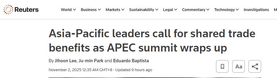 全球媒體聚焦|外媒稱2025APEC峰會凸顯地區(qū)經(jīng)濟體對自由貿(mào)易的承諾