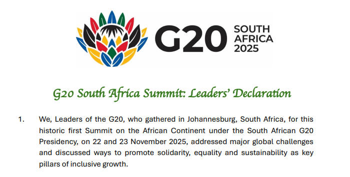 二十國集團(G20)領(lǐng)導人第二十次峰會當?shù)貢r間11月22日在南非約翰內(nèi)斯堡開幕。南非國際關(guān)系與合作部長羅納德·拉莫拉在當天下午召開的記者發(fā)布會上表示,與會各方已就會議核心議程達成共識,并通過了《二十國集團領(lǐng)導人約翰內(nèi)斯堡峰會宣言》。