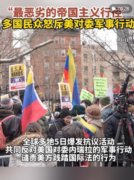當(dāng)?shù)貢r間5日中午,遭美國強行控制的委內(nèi)瑞拉總統(tǒng)馬杜羅夫婦在美國紐約南區(qū)聯(lián)邦地區(qū)法院首次出庭,拒絕美方一切所謂指控。當(dāng)天,全球多地爆發(fā)抗議活動,反對美國對委內(nèi)瑞拉的軍事行動,譴責(zé)美方踐踏國際法的行為。