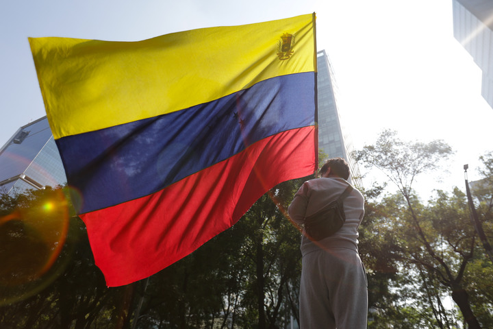 2026年1月10日,在墨西哥首都墨西哥城,當(dāng)?shù)孛癖妳⒓邮就顒印.?dāng)日,部分墨西哥民眾在墨西哥城舉行示威活動,抗議美國對委內(nèi)瑞拉發(fā)動軍事打擊。新華社發(fā)(弗朗西斯科·卡涅多攝)