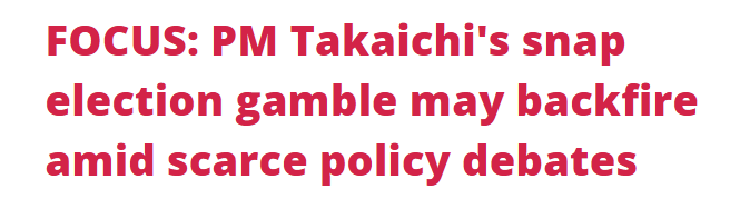 日本共同社英文網(wǎng)的報道援引政治分析師的話稱,高市擔(dān)心,一旦國會開始辯論,其支持率會下降,尤其是考慮到反對黨預(yù)計將會就一些長期存在的丑聞向政府施壓。