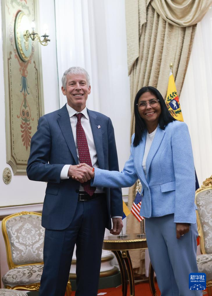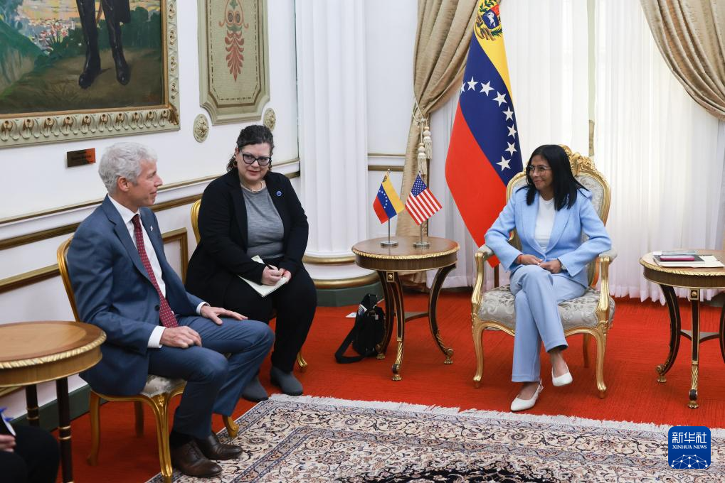 委內瑞拉代總統(tǒng)德爾西·羅德里格斯11日在加拉加斯總統(tǒng)府會見美國能源部長克里斯·賴特。