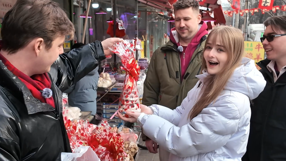 帝漢尼:我?guī)麄兂粤颂嵌諆?,買了干果、瓜子。人家店鋪老板說“來嘗嘗”,我就讓他們嘗嘗。他們問“這個還能嘗嗎?”我說怎么不可以,你不嘗嘗怎么知道好吃不好吃。這些對我們來說很普通、幾乎天天都能遇到的事,對他們來說就很新鮮,嘛都新鮮。