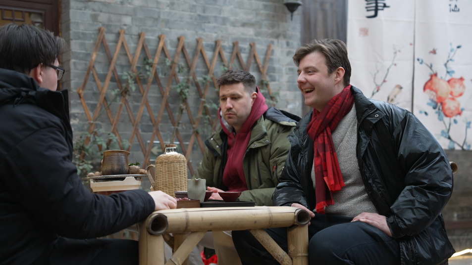 帝漢尼(右一)帶著匈牙利老鄉(xiāng)們體驗中國時下最流行的“圍爐煮茶”