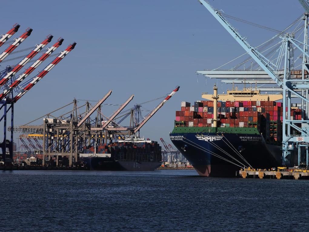 這是2025年5月10日在美國(guó)洛杉磯港拍攝的貨船。新華社發(fā)(邱晨攝)