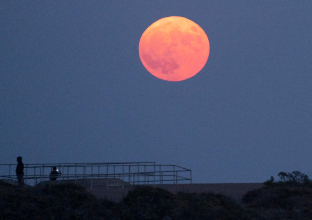 這是2023年8月30日在美國舊金山金門大橋附近拍攝的“超級月亮”。新華社發(fā)(李建國攝)