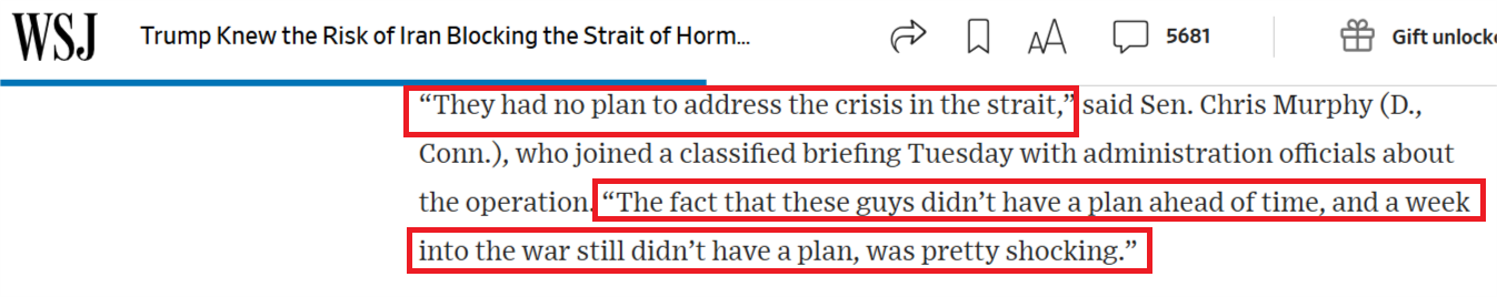 《華爾街日報》14日的報道指出,當前霍爾木茲海峽通行受阻及由此引發(fā)的經濟動蕩,反映出美國政府在發(fā)動軍事打擊時缺乏規(guī)劃與深思熟慮。