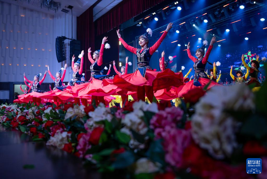 3月24日,在吉爾吉斯斯坦首都比什凱克,演員在開幕式上表演舞蹈。新華社記者 李任滋 攝