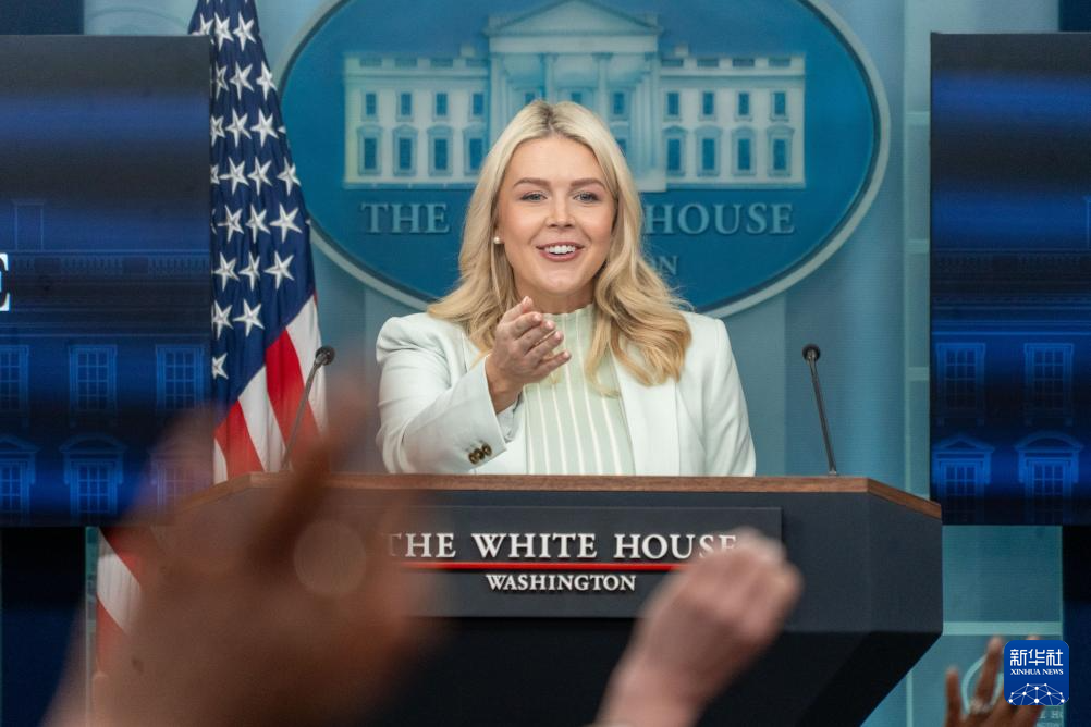 3月25日,在美國(guó)首都華盛頓白宮,白宮新聞秘書萊維特出席記者會(huì)。新華社發(fā)(李源清攝)