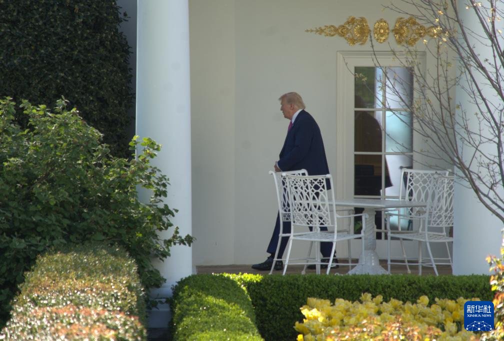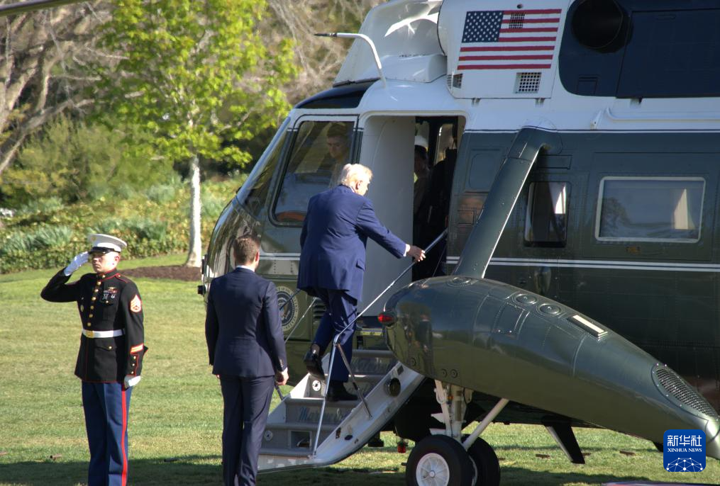 4月10日,美國總統(tǒng)特朗普準備乘直升機離開華盛頓白宮。新華社發(fā)(李源清攝)