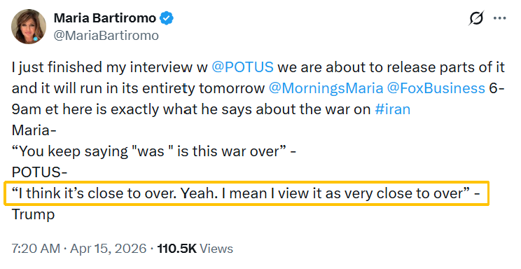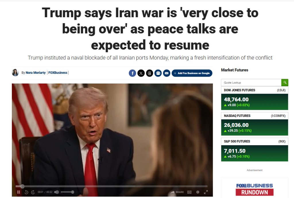美伊重啟談判之際 特朗普稱伊朗戰(zhàn)事已“接近結(jié)束”