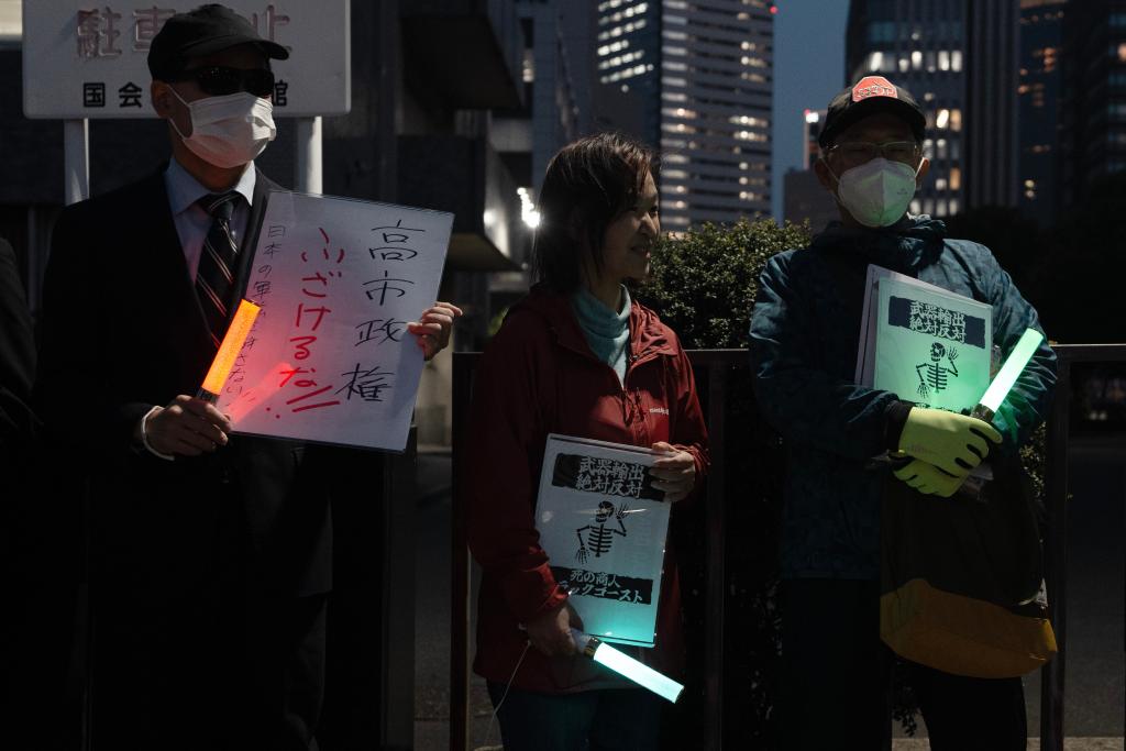 針對高市早苗政府計劃近期修改“防衛(wèi)裝備轉(zhuǎn)移三原則”及其運用指南,日本民眾16日晚在東京的首相官邸前舉行抗議集會,反對解禁殺傷性武器出口。新華社記者 賈浩成 攝