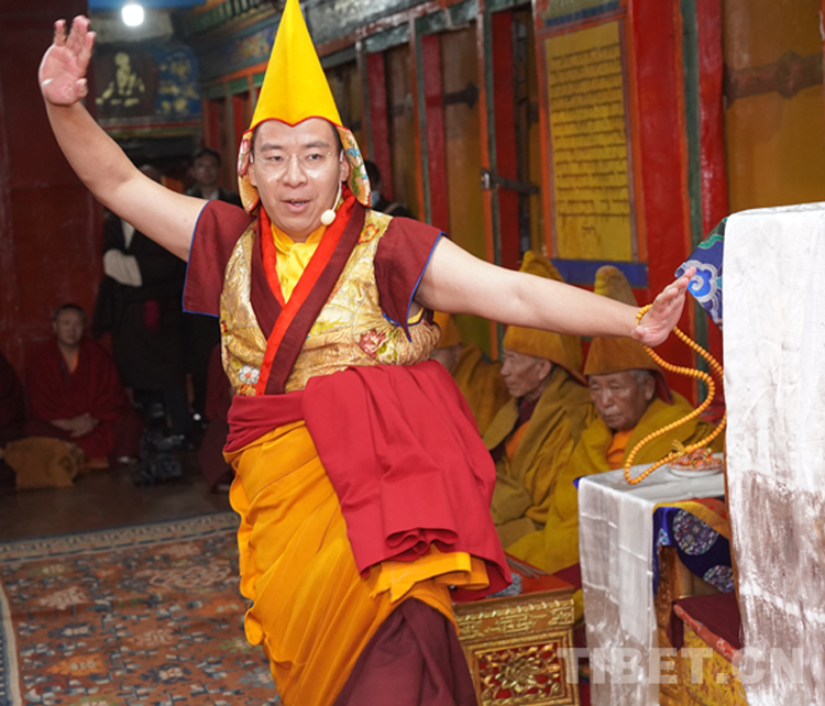 圖為第十一世班禪額爾德尼·確吉杰布“嘎欽”答辯現(xiàn)場 攝影:王淑
