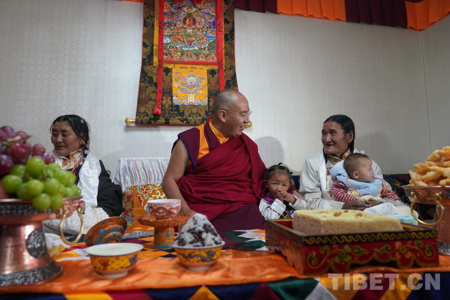 圖為第十一世班禪額爾德尼·確吉杰布在日喀則市仲巴縣里孜口岸邊境農(nóng)牧民家中調研 攝影:王淑