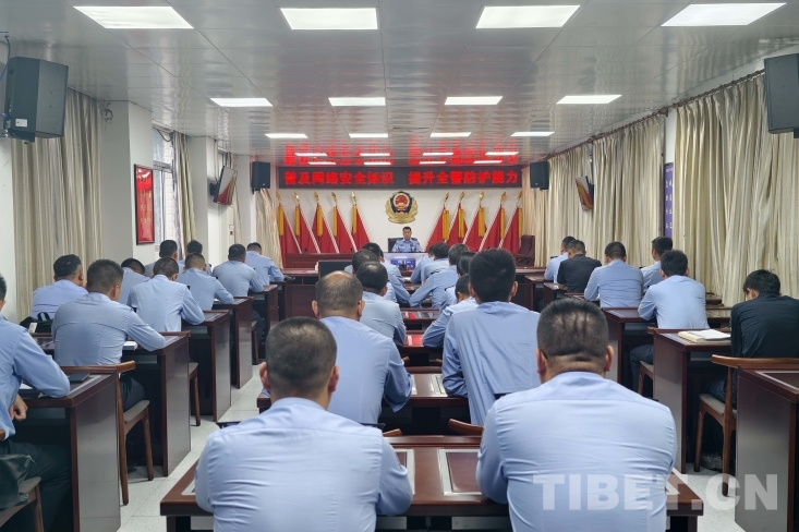 圖為聶拉木邊檢站民警集體學習網(wǎng)絡安全知識