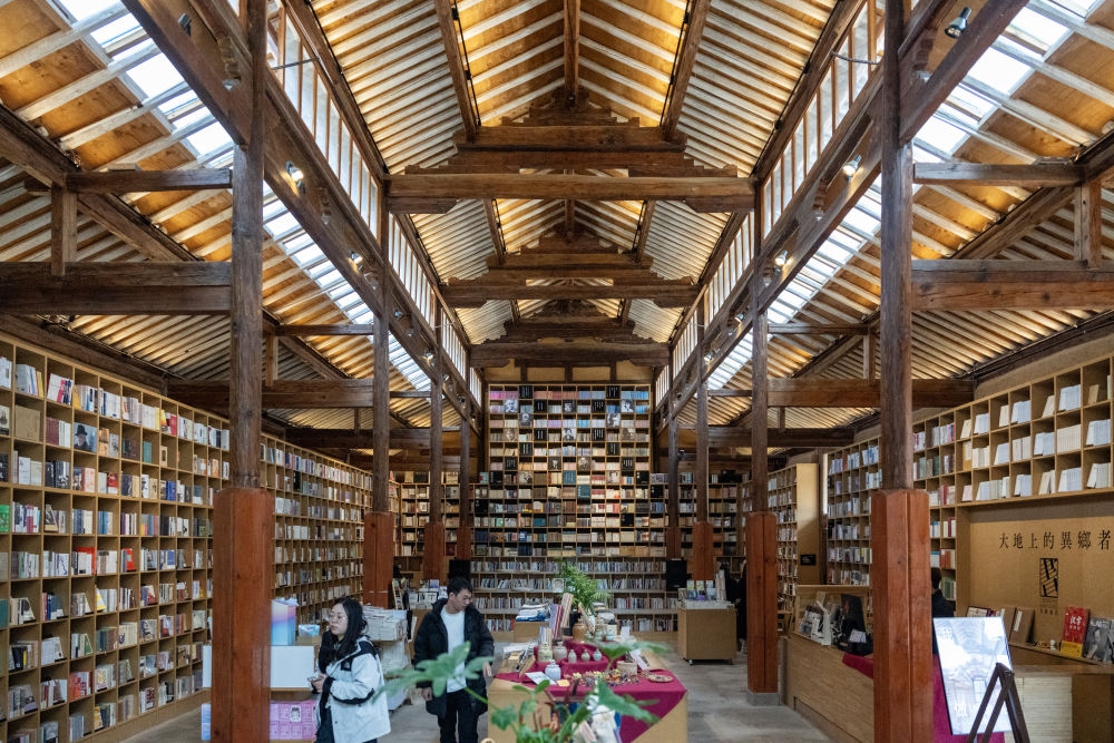 這是2025年3月17日拍攝的大理州沙溪鎮(zhèn)先鋒沙溪白族書局。這家書店坐落在劍川縣距沙溪古鎮(zhèn)約兩公里的地方。書局依托村子的舊糧倉改造而成,如今已經(jīng)成為一座文化地標(biāo)和“精神糧倉”。