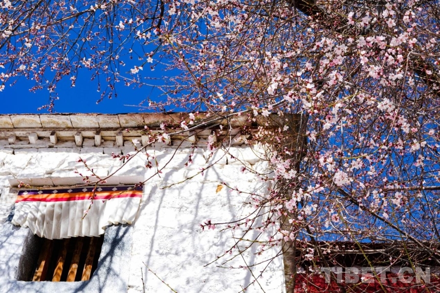 帕邦喀寺盛開(kāi)的桃花,在門(mén)窗的映襯下別有一番風(fēng)景 攝影:趙振宇