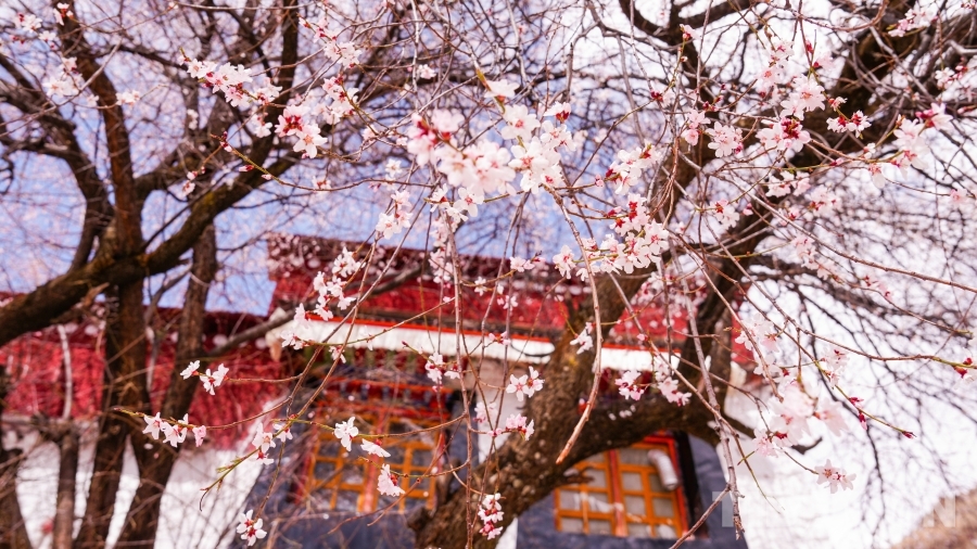 帕邦喀寺盛開(kāi)的桃花 攝影:張藝彤